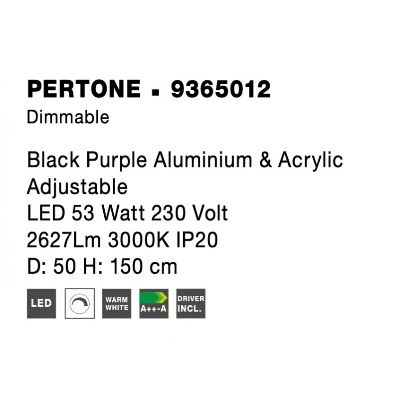 Triac Dimmable Black Purple Aluminium & Acrylic LED 53 Watt 230 Volt 2627Lm 3000K IP20 D: 50 H: 150 cm Adjustable Height & Adjus