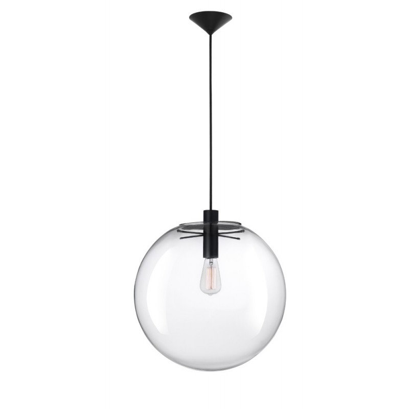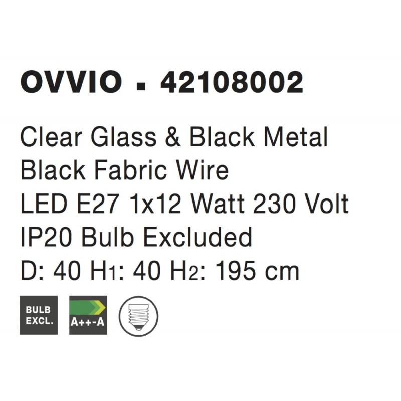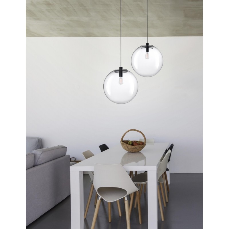Clear Glass & Black Metal Black Fabric Wire LED E27 1x12 Watt 230 Volt IP20 Bulb Excluded D: 40 H1: 40 H2: 195 cm Adjustable He