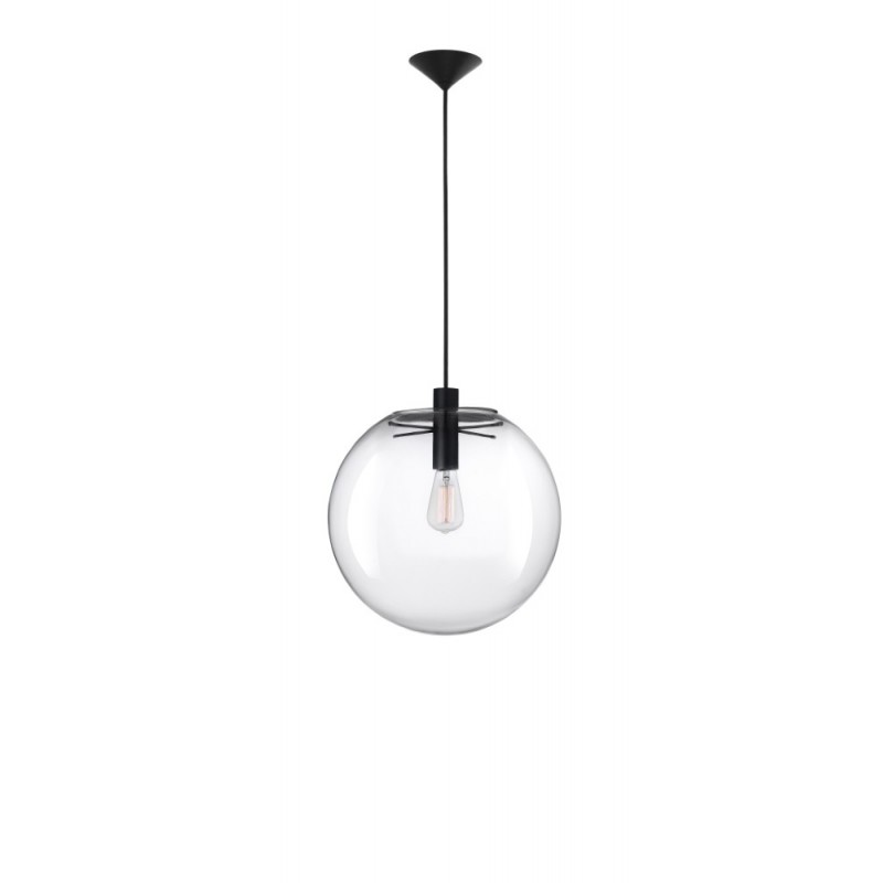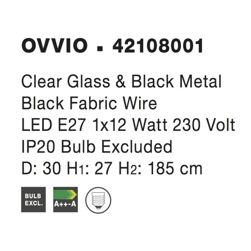 Clear Glass & Black Metal Black Fabric Wire LED E27 1x12 Watt 230 Volt IP20 Bulb Excluded D: 30 H1: 27 H2: 185 cm Adjustable He
