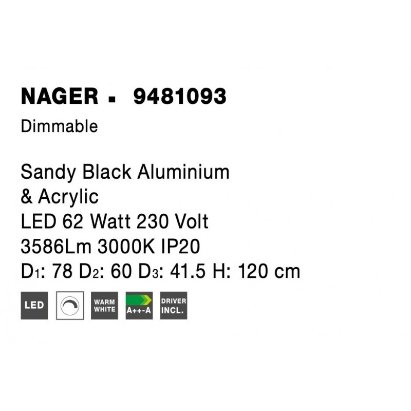 Traic Dimmable Sandy Black Aluminium & Acrylic LED 62 Watt 230 Volt 3586Lm 3000K IP20 D1: 78 D2: 60 D3: 41.5 H: 120 cm Adjusta