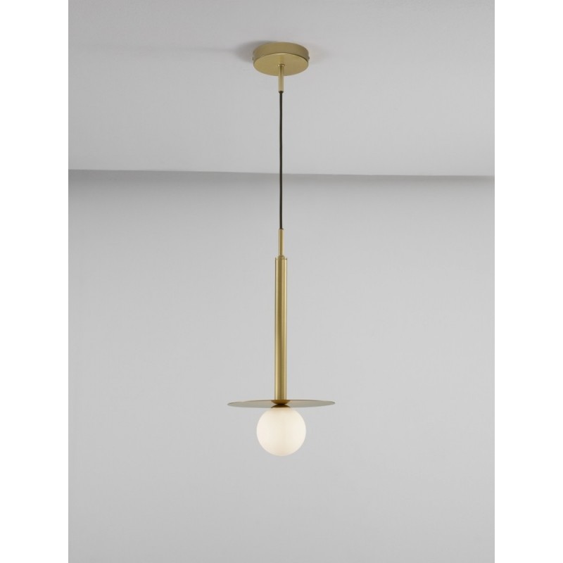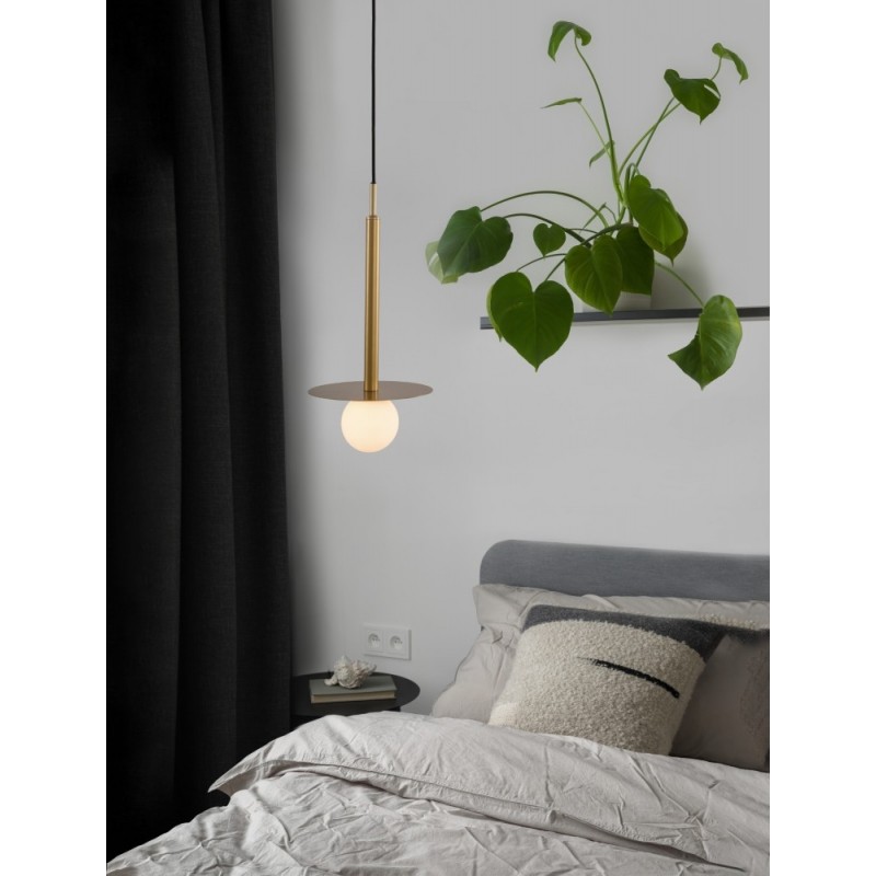 Brass Gold Metal Opal Glass LED G9 1x5 Watt 230 Volt IP20 Bulb Excluded D: 22 H1: 55 H2: 150 cm Adjustable height