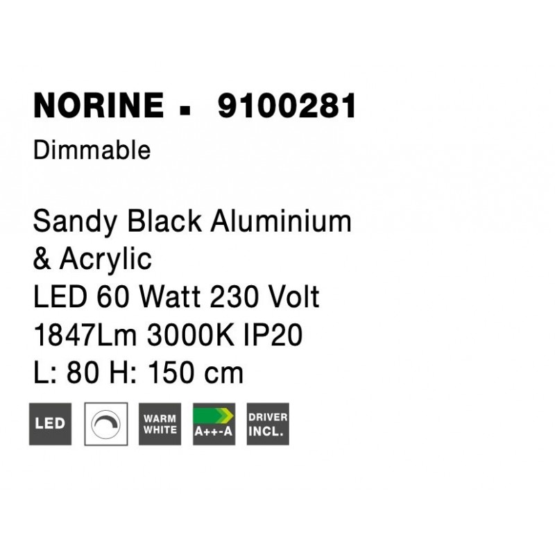 Triac Dimmable Sandy Black Aluminium & Acrylic LED 60 Watt 230 Volt 1847Lm 3000K IP20 D: 80 H: 150 cm Adjustable Height