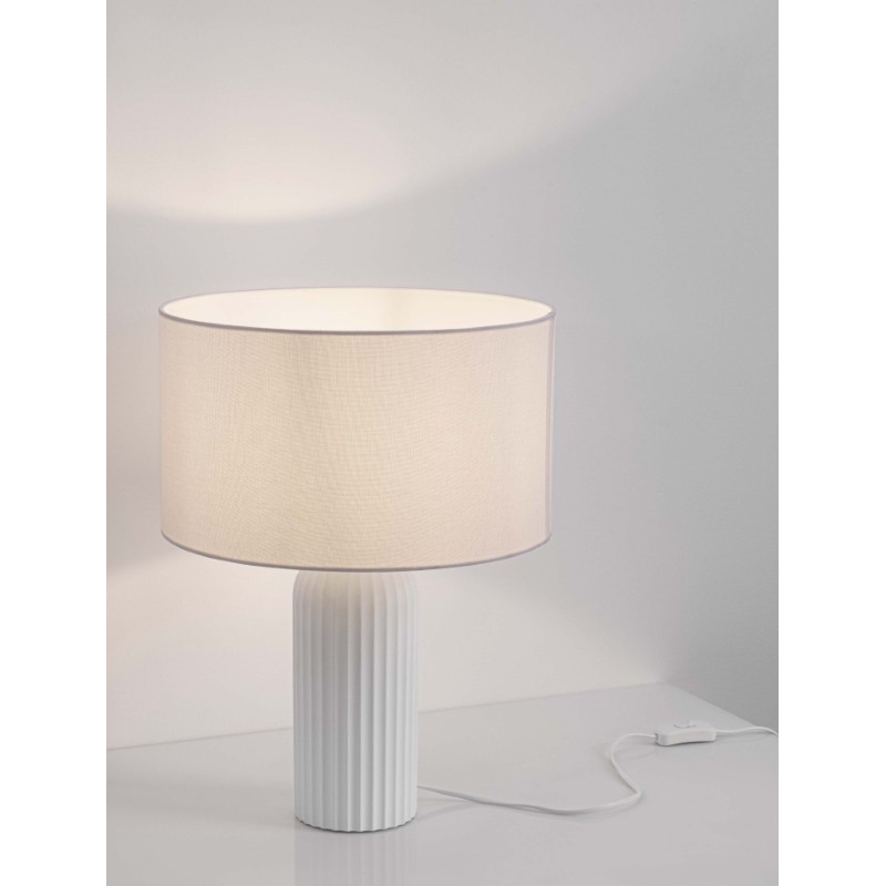 White Gypsum & White Fabric Shade LED E27 1x12 Watt 100-240Volt bulb excluded D: 35 H: 47 cm