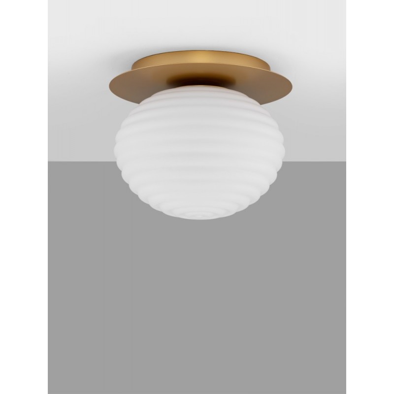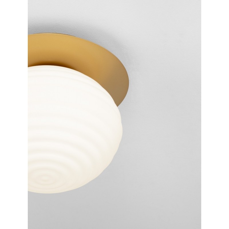 Matt Gold Metal & Milky White Structured Glass LED E27 1x12 Watt 230 Volt IP20 Bulb Excluded D: 26 H: 21.5 cm