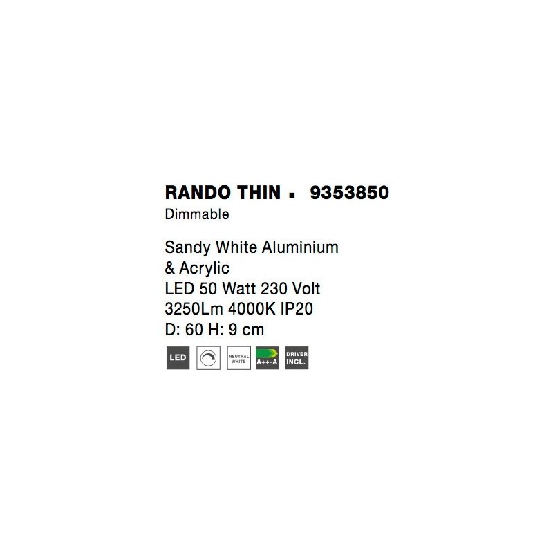 4000K Triac Dimmable Sandy White Aluminium & Acrylic LED 50 Watt 230 Volt 2864Lm IP20 D: 60 H: 9 cm
