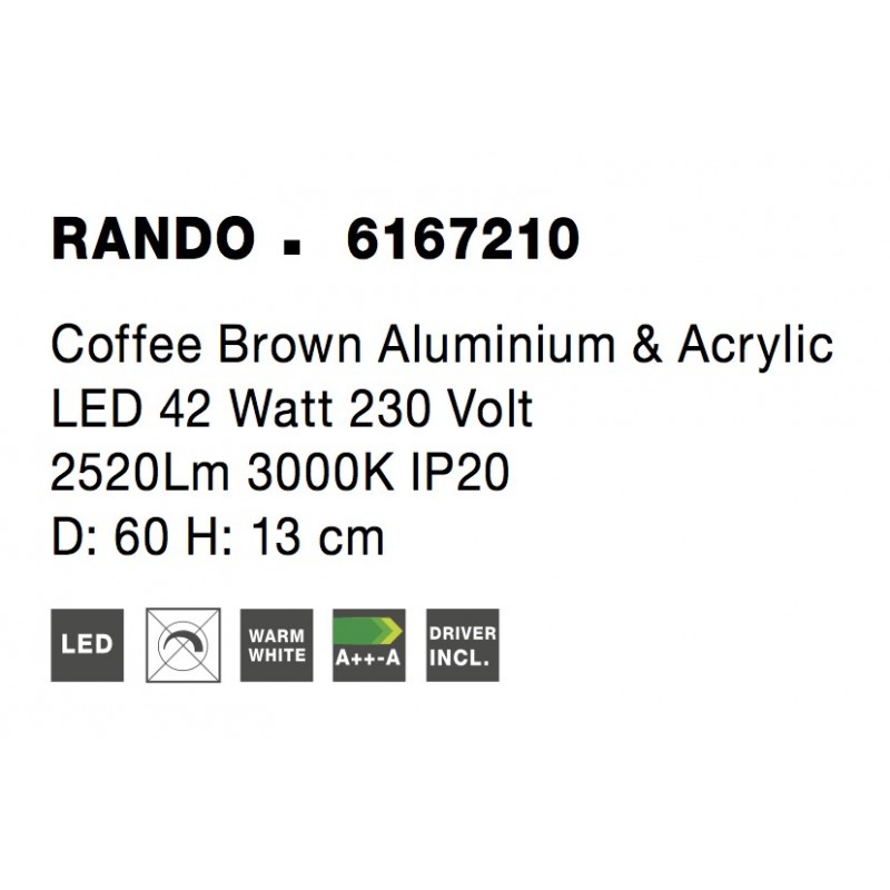 Coffee Brown Aluminium & Acrylic LED 42 Watt 230 Volt 2691Lm 3000K IP20 D: 60 H: 13 cm