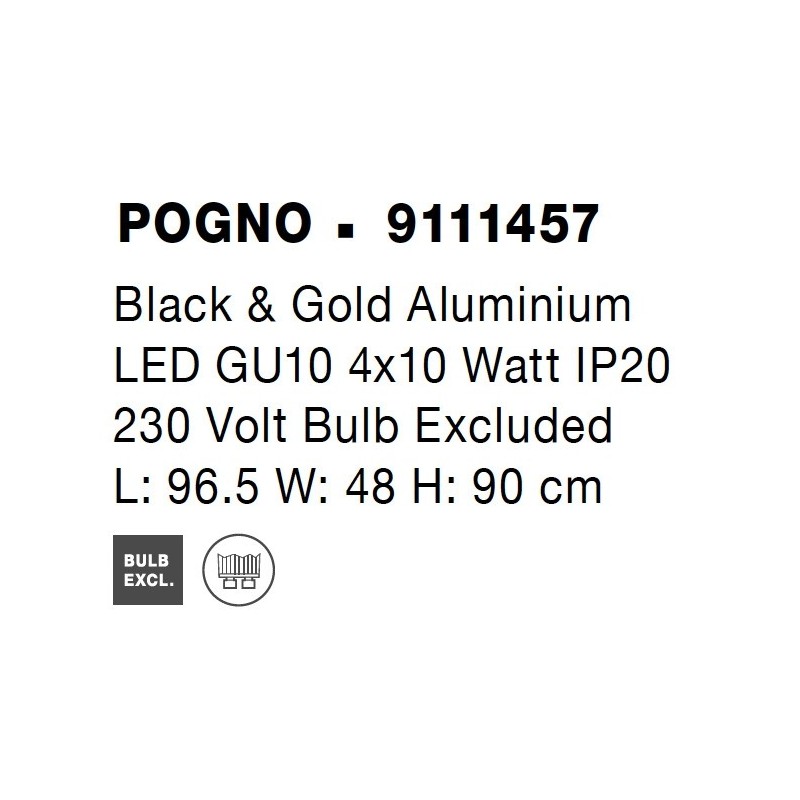 Black & Gold Aluminium LED GU10 4x10 Watt 230 Volt IP20 Bulb Excluded L: 96.5 H: 90 cm