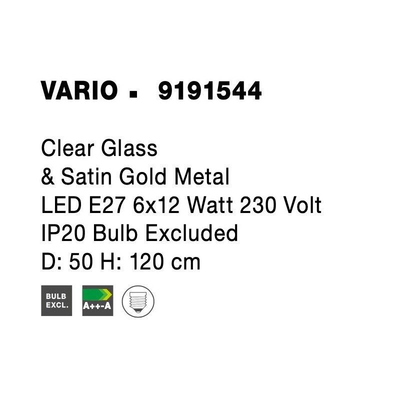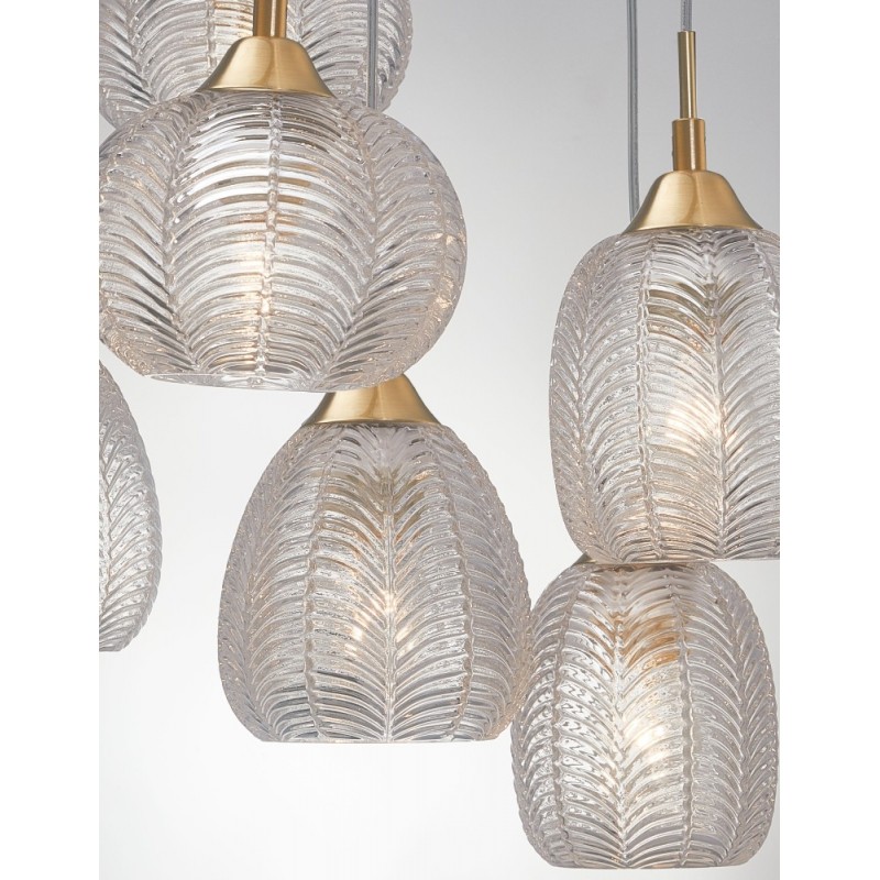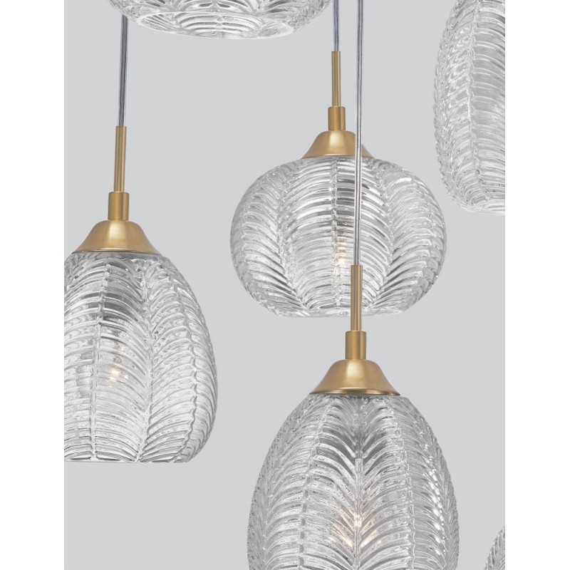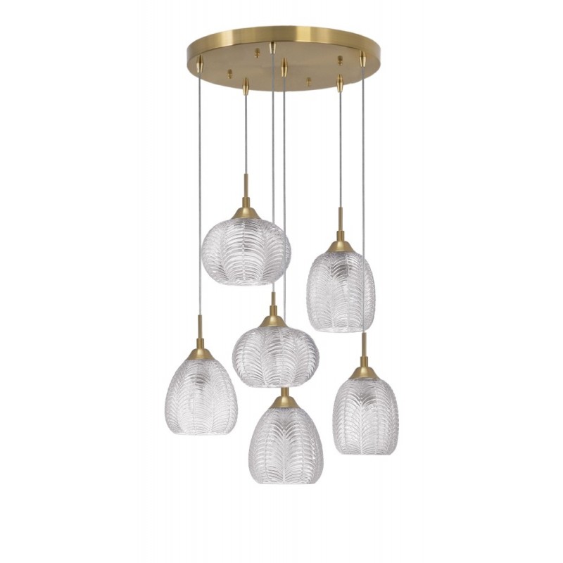 Clear Glass & Satin Gold Metal LED E27 6x12 Watt 230 Volt IP20 Bulb Excluded D: 50 H: 120 cm Adjustable Height