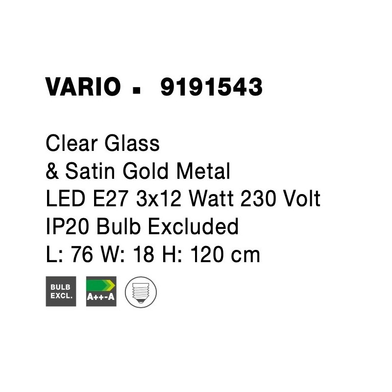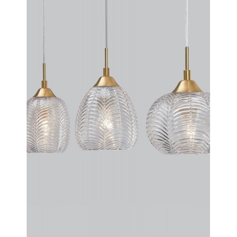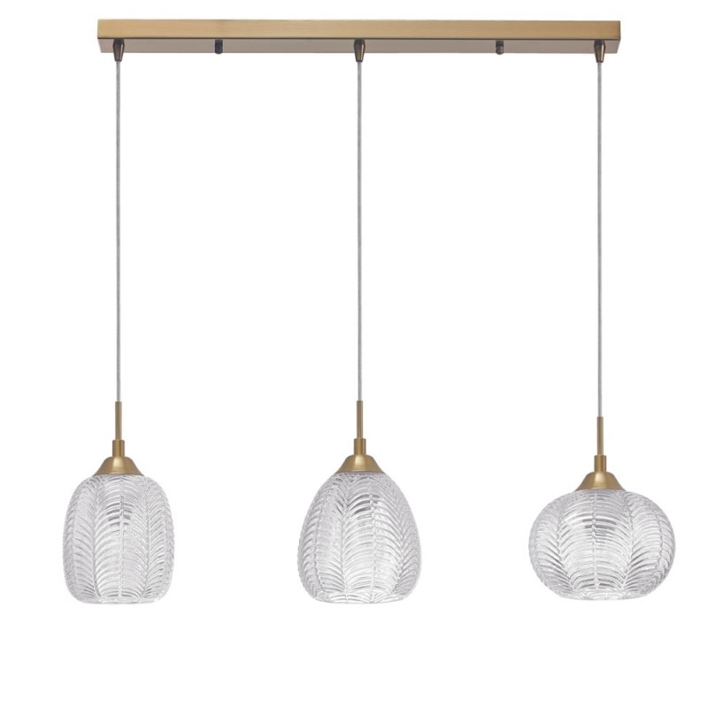 Clear Glass & Satin Gold Metal LED E27 3x12 Watt 230 Volt IP20 Bulb Excluded L: 76 W: 18 H: 120 cm Adjustable Height