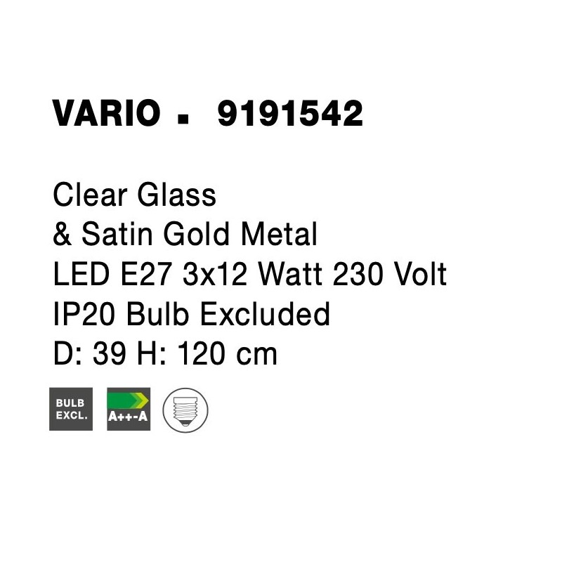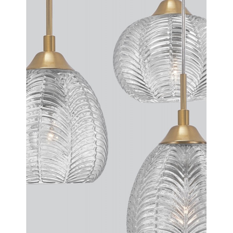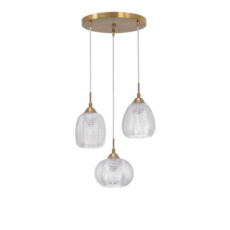 Clear Glass & Satin Gold Metal LED E27 3x12 Watt 230 Volt IP20 Bulb Excluded D: 39 H: 120 cm Adjustable Height