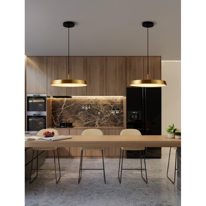 Satin Gold Aluminium & Acrylic Black Fabric Wire LED 37 Watt 220-240 Volt 4275Lm 3000K IP20 D: 50 H: 130 cm