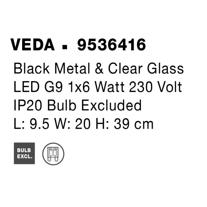 Black Metal & Clear Glass LED G9 1x6 Watt 230 Volt IP20 Bulb Excluded L: 9.5 W: 20 H: 39 cm Adjustable height