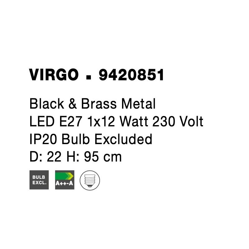Black & Brass Metal LED E27 1x12 Watt 230 Volt IP20 Bulb Excluded D: 22 H: 95 cm Adjustable Fixed height