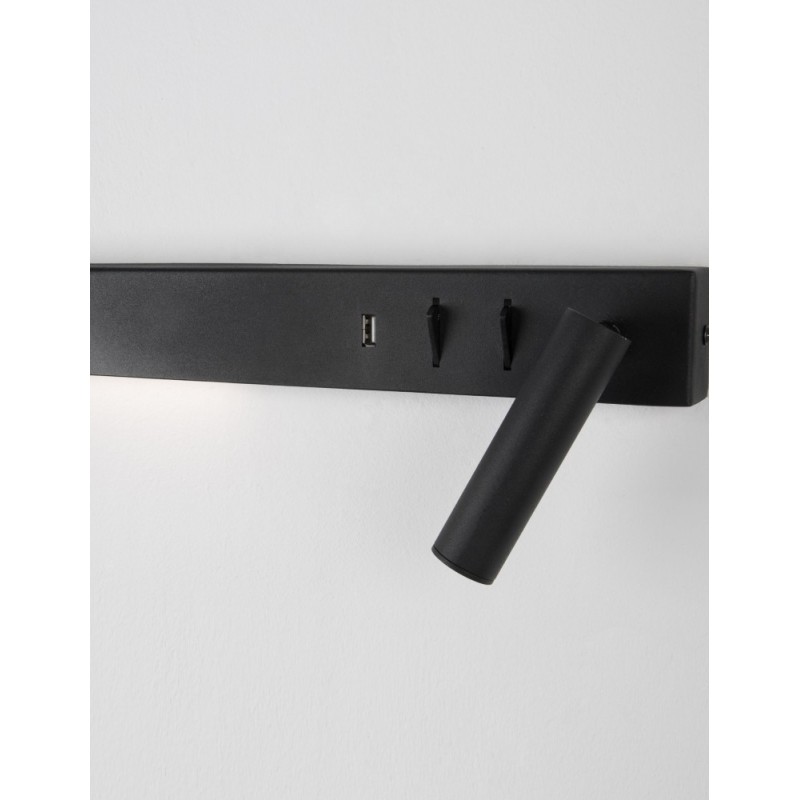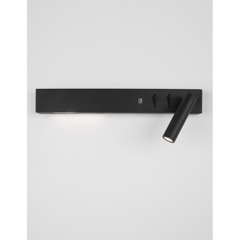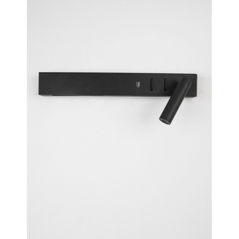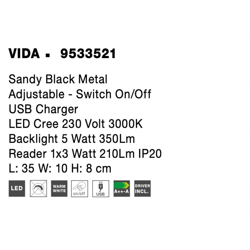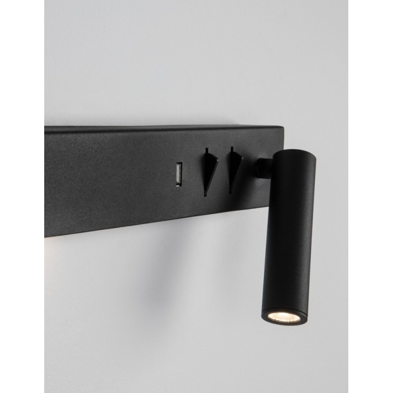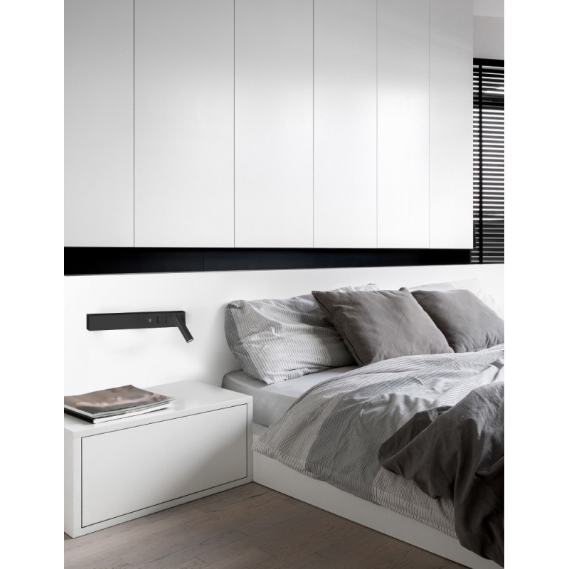 Sandy Black Metal Adjustable - Switch On/Off USB Charger LED Cree 230 Volt 3000K Backlight 5 Watt 350Lm Reader 1x3 Watt 210Lm IP