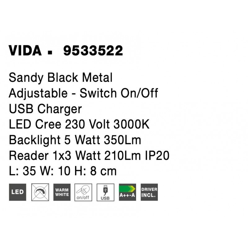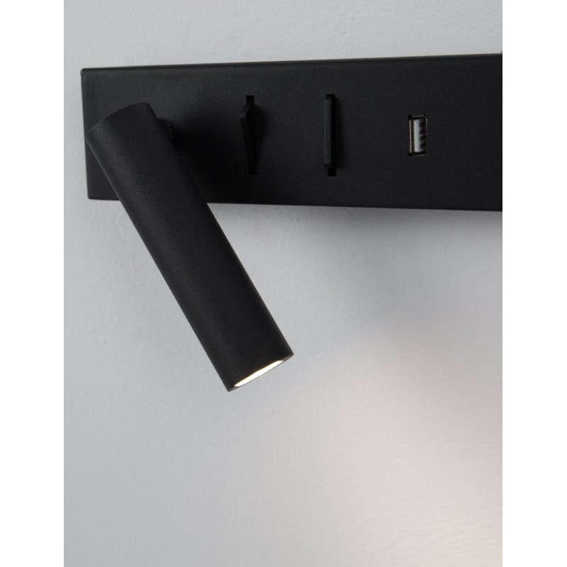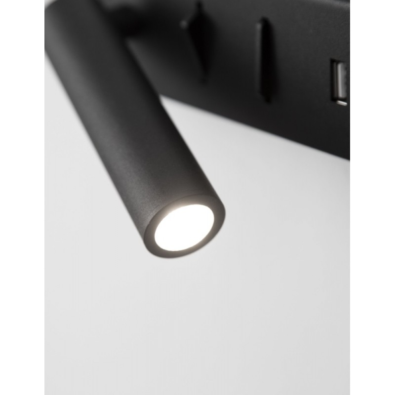 Sandy Black Metal Adjustable - Switch On/Off USB Charger LED Cree 230 Volt 3000K Backlight 5 Watt 350Lm Reader 1x3 Watt 210Lm