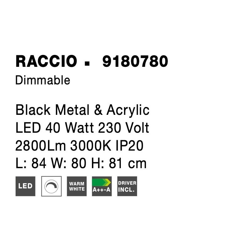 Triac Dimmable Black Metal & Acrylic LED 48 Watt 230 Volt 3633Lm 3000K IP20 Included Two parts Of Metal 33 & 43 cm L: 84 W: 80