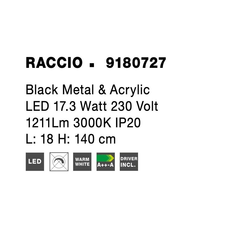 Black Metal & Acrylic LED 21 Watt 230 Volt 1557Lm 3000K IP20 L: 18 H: 140 cm Rotating & Adjustable