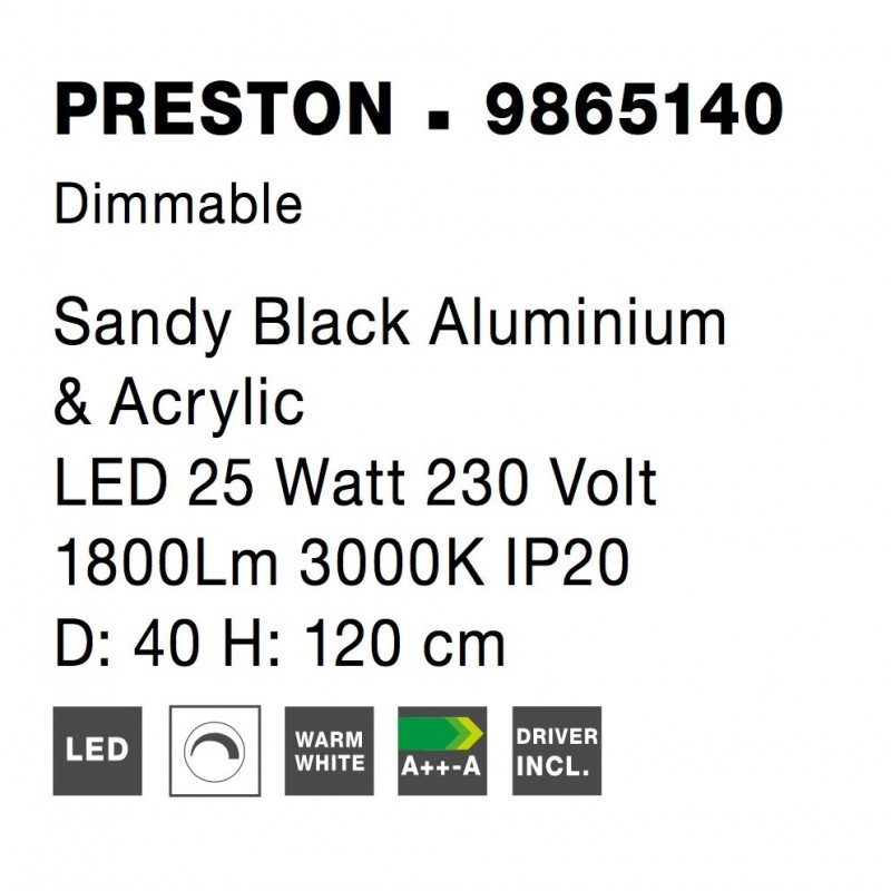 Traic Dimmable Sandy Black Aluminium & Acrylic LED 30 Watt 230 Volt 1828Lm 3000K IP20 D: 40 H: 120 cm Adjustable height