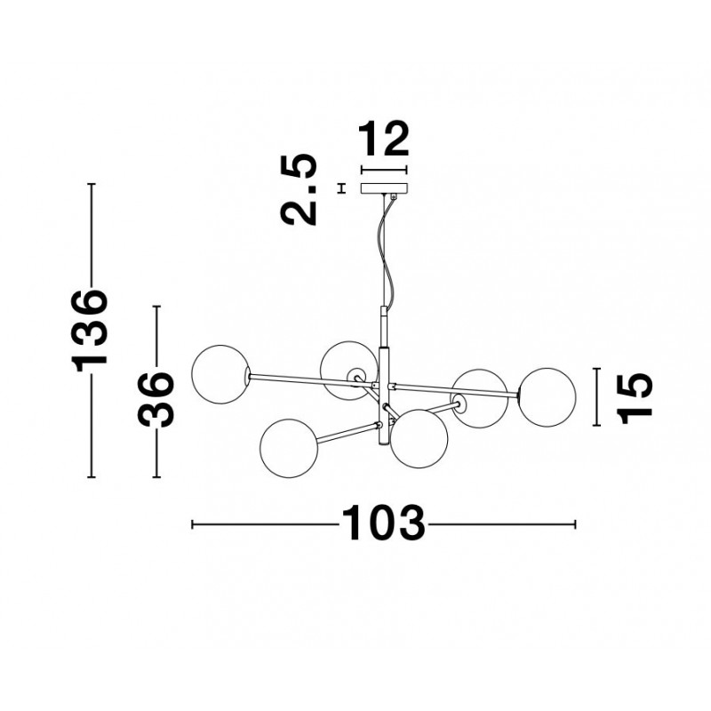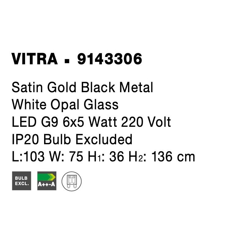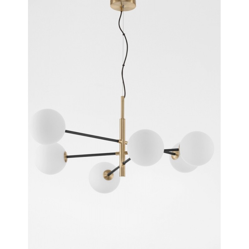 Satin Gold & Black Metal White Opal Glass LED G9 6x5 Watt 220 Volt IP20 Bulb Excluded L: 103 W: 75 H1: 36 H2: 136 cm Adjustable