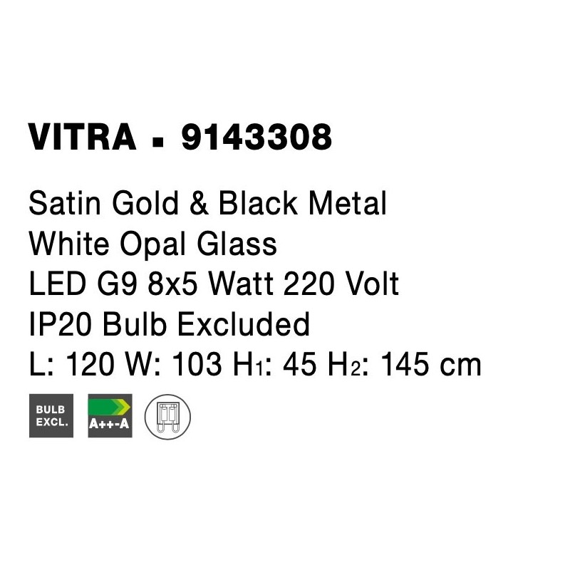 Satin Gold & Black Metal White Opal Glass LED G9 8x5 Watt 220 Volt IP20 Bulb Excluded L: 120 W: 103 H1: 45 H2: 145 cm Adjustable