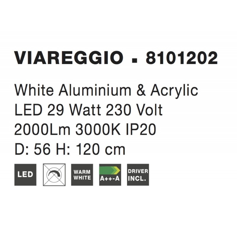 White Aluminium & Acrylic LED 28 Watt 230 Volt 2222Lm 3000K IP20 D: 56 H: 120 cm Adjustable Height
