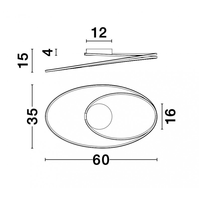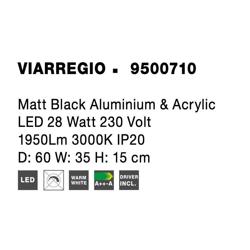 Matt Black Aluminium & Acrylic LED 28 Watt 230 Volt 1950Lm 3000K IP20 D: 60 W: 35 H: 15 cm
