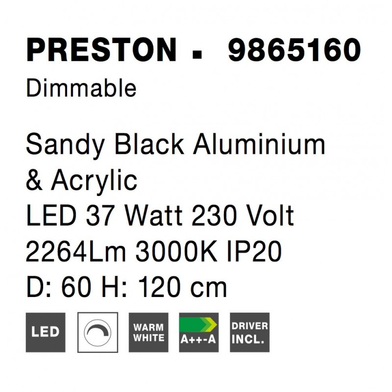 Traic Dimmable Sandy Black Aluminium & Acrylic LED 35 Watt 230 Volt 2264Lm 3000K IP20 D: 60 H: 120 cm Adjustable height