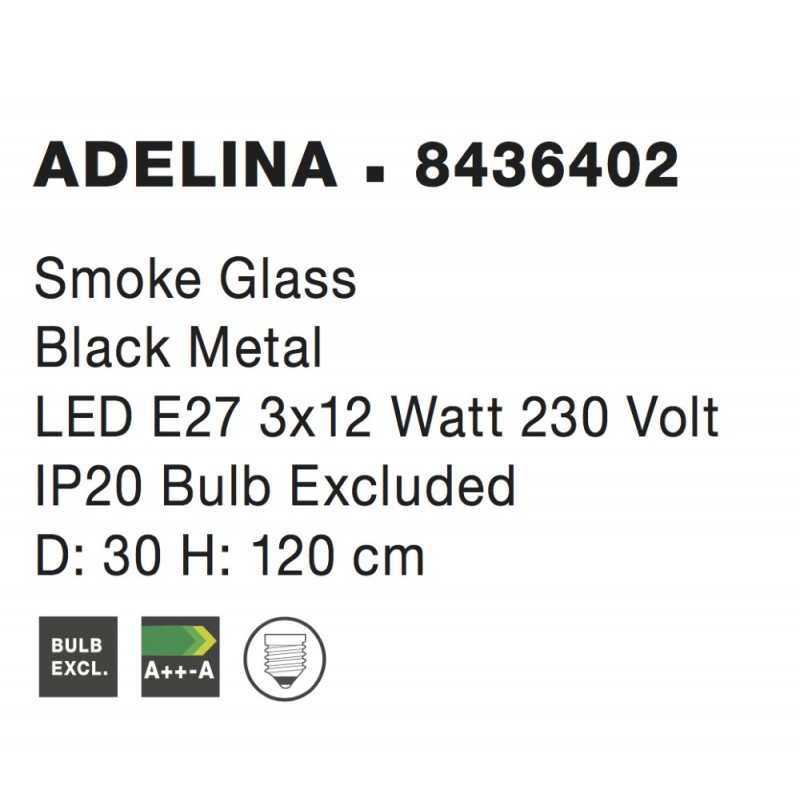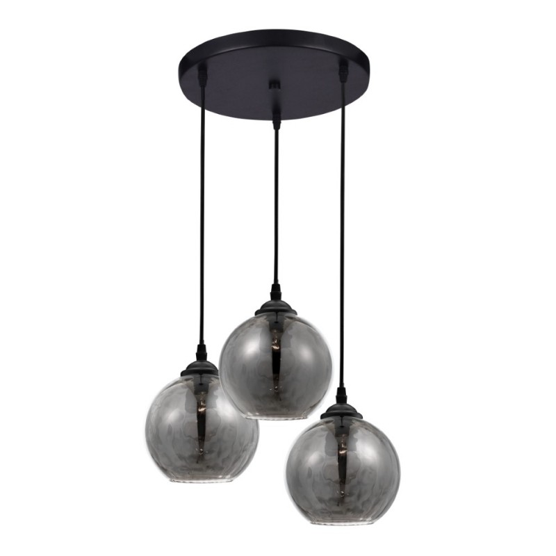 Smoke Glass Black Metal LED E27 3x12 Watt 230 Volt IP20 Bulb Excluded D: 30 H: 120 cm Adjustable height