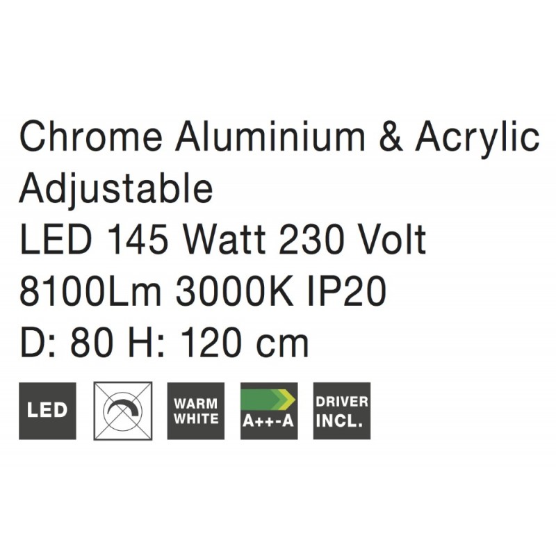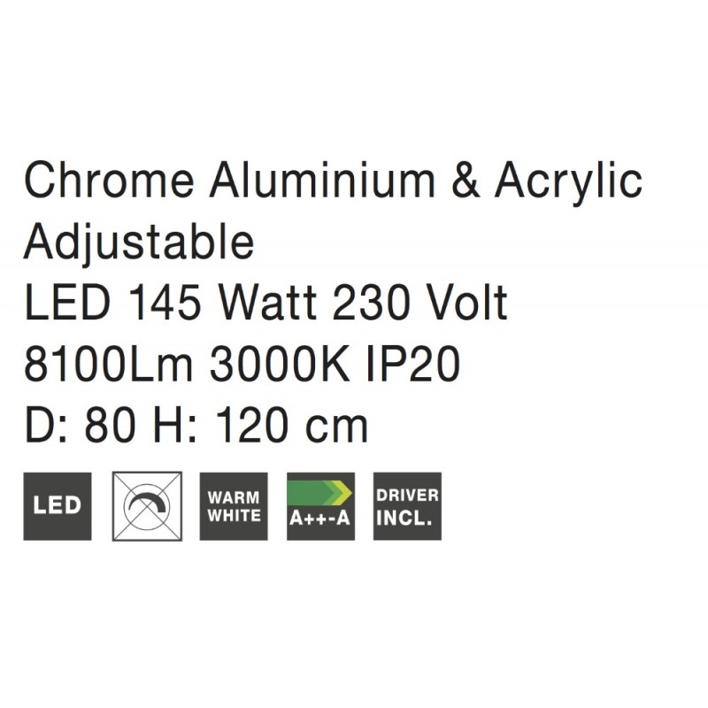 Not Dimmable Chrome Aluminium & Acrylic LED 129 Watt 230 Volt 6831Lm 3000K IP20 D: 80 H: 120 cm Adjustable Height & Rotating