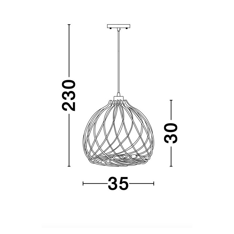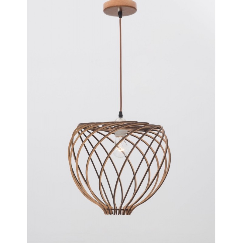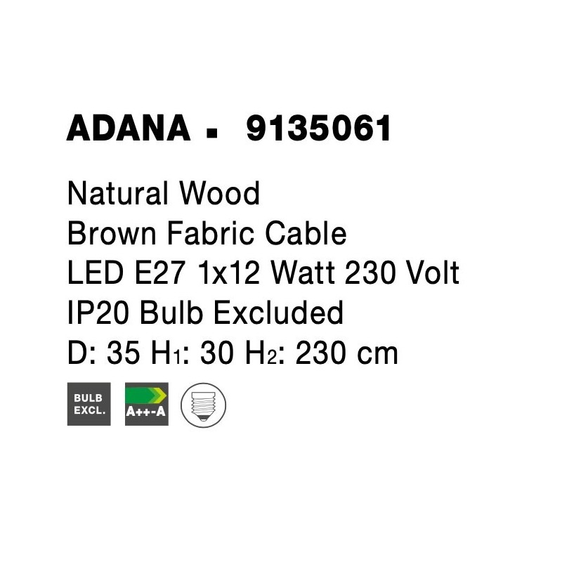 Natural Wood Brown Fabric Cable LED E27 1x12 Watt 230 Volt IP20 Bulb Excluded D: 35 H1: 30 H2: 230 cm Adjustable height UPSIDE D