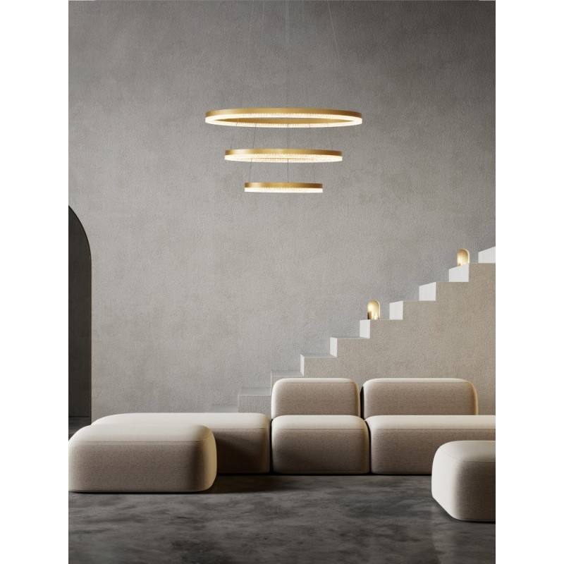 Triac Dimmable Brass Gold Aluminium LED 97 Watt 220 Volt 9452Lm 3000K IP20 D: 80 H: 300 cm Adjustable Height