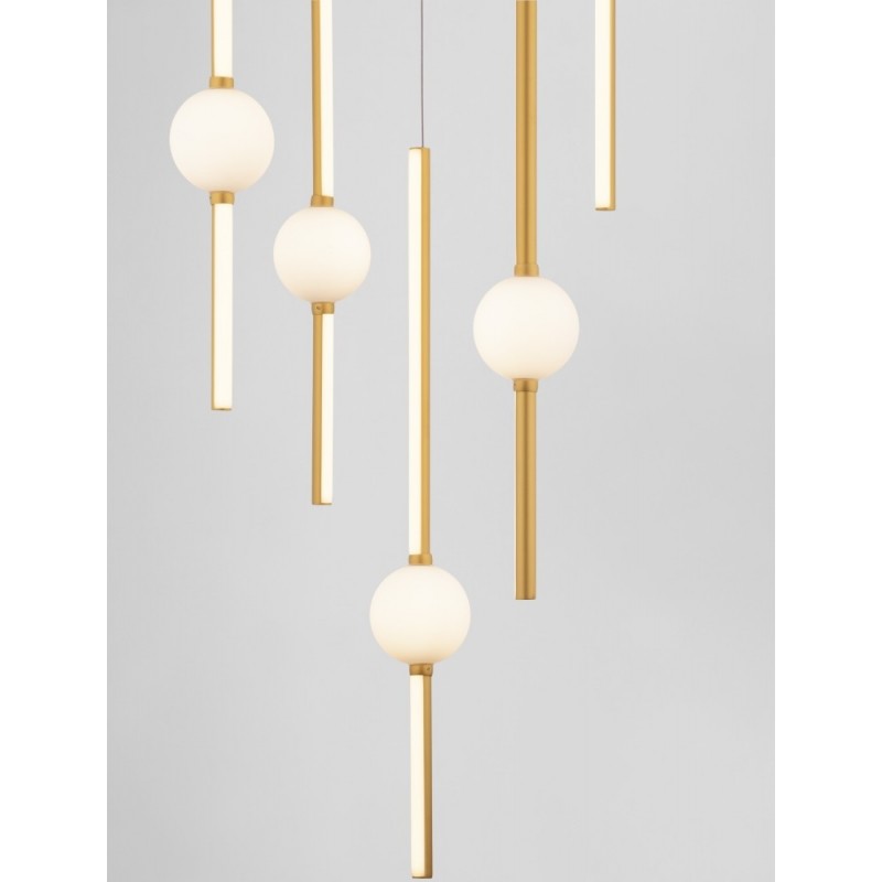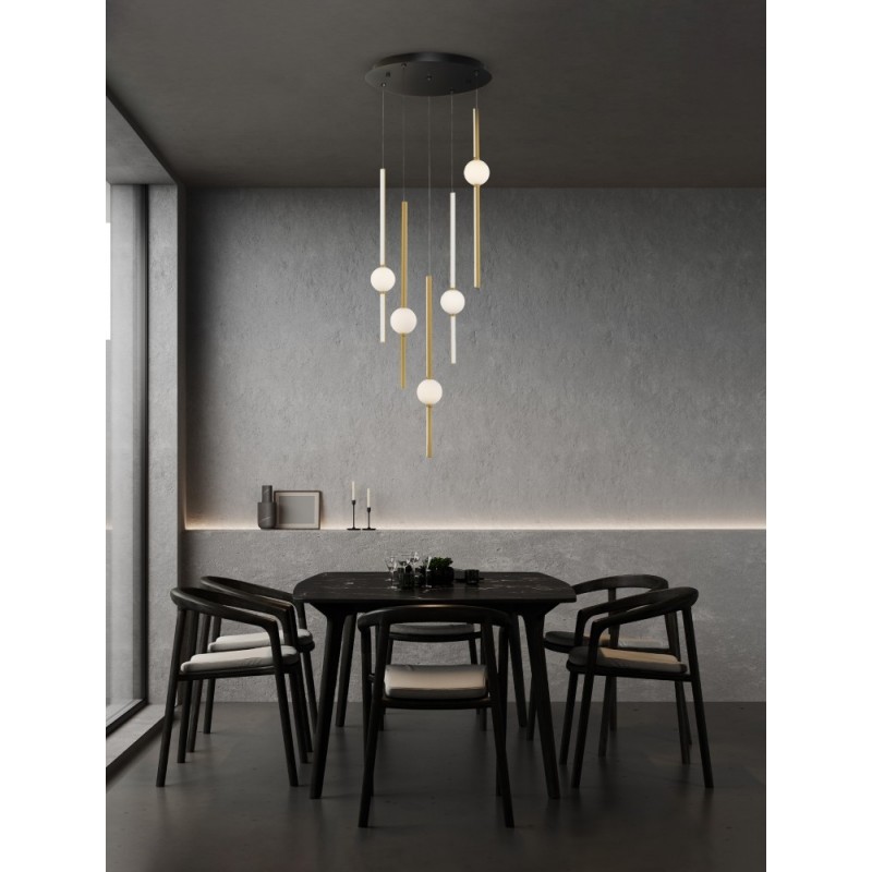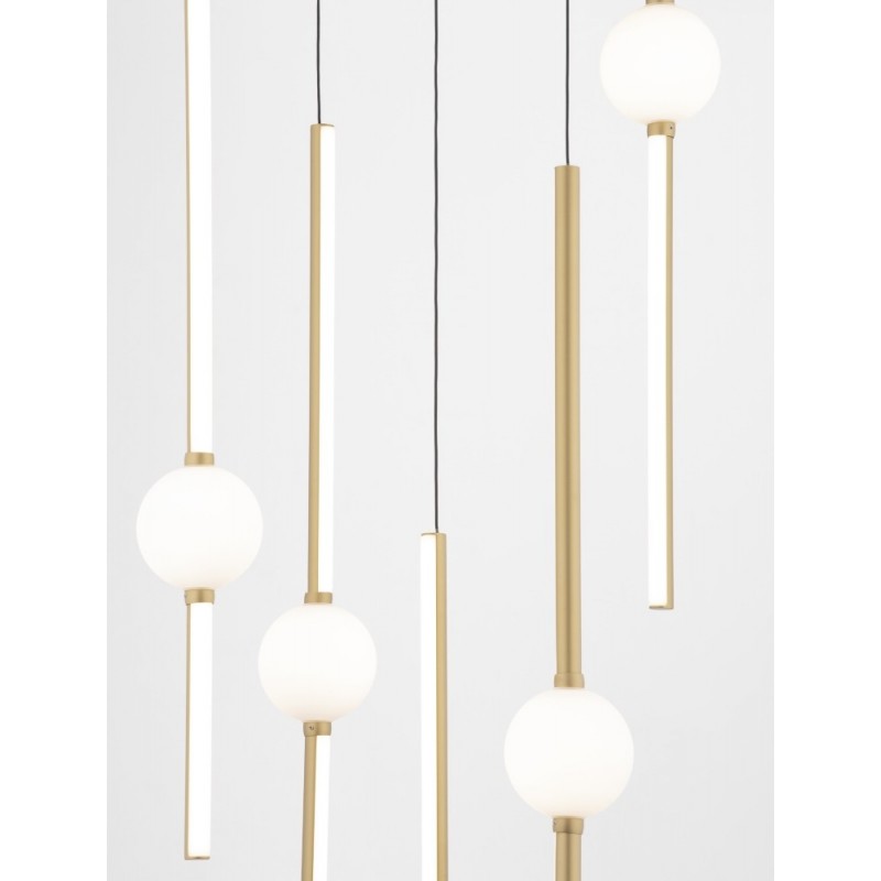 Triac Dimmable Black & Gold Aluminium Opal Glass LED 61 Watt 230 Volt 5589Lm 3000K IP20 D: 52 H: 150 cm Adjustable Height
