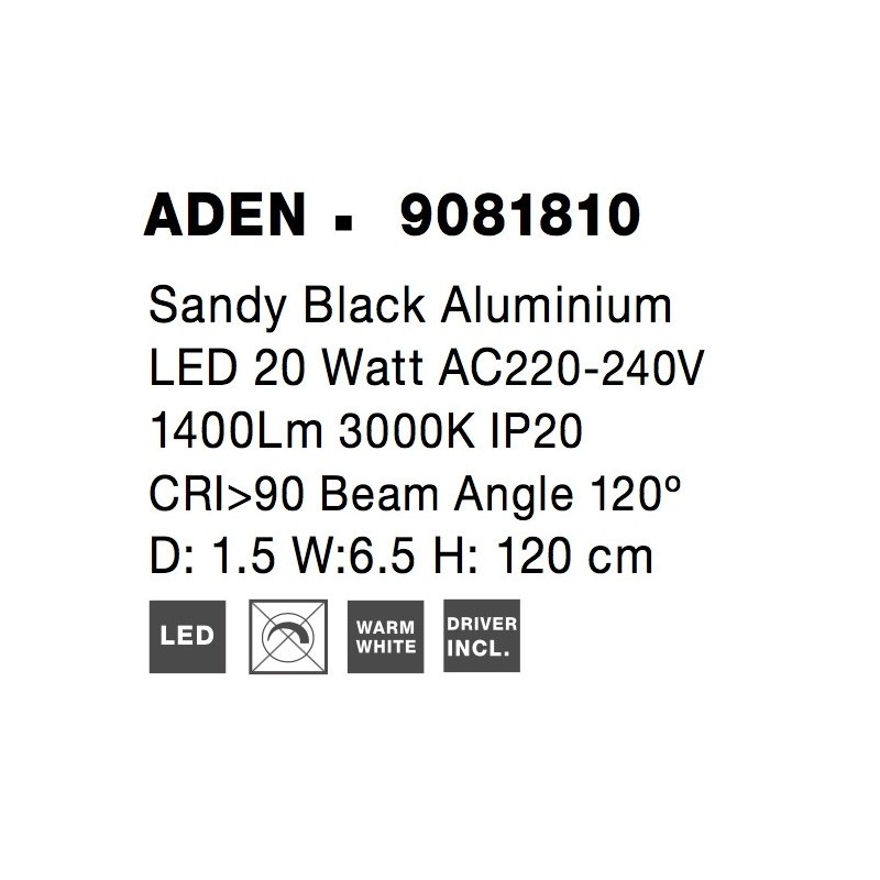 Sandy Black Aluminium LED 20 Watt 220-240 Volt 1400Lm 3000K IP20 L: 1.5 W: 6.5 H: 120 cm
