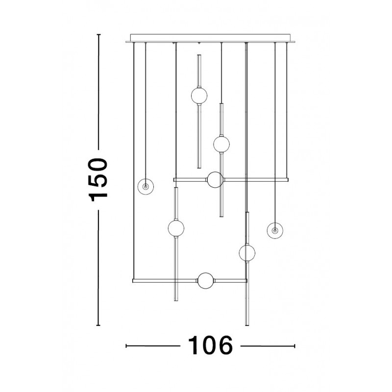 Triac Dimmable Black & Gold Aluminium Opal Glass LED 106 Watt 230 Volt 9926Lm 3000K IP20 L: 106 W: 80 H: 150 cm Adjustable He