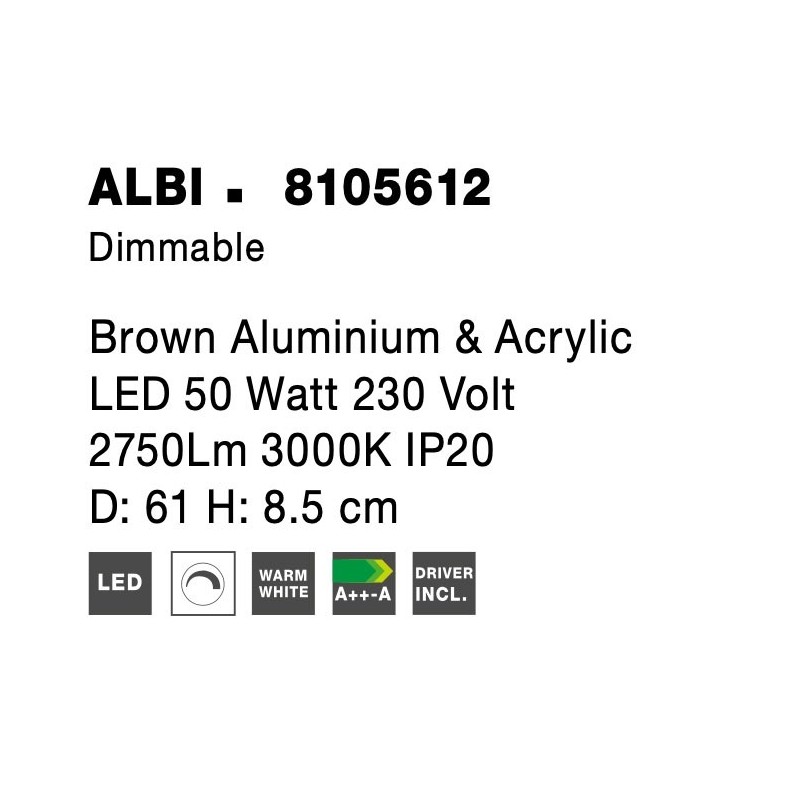 Triac Dimmable Brown Aluminium & Acrylic LED 50 Watt 230 Volt 2876Lm 3000K IP20 D: 61 H: 8.5 cm