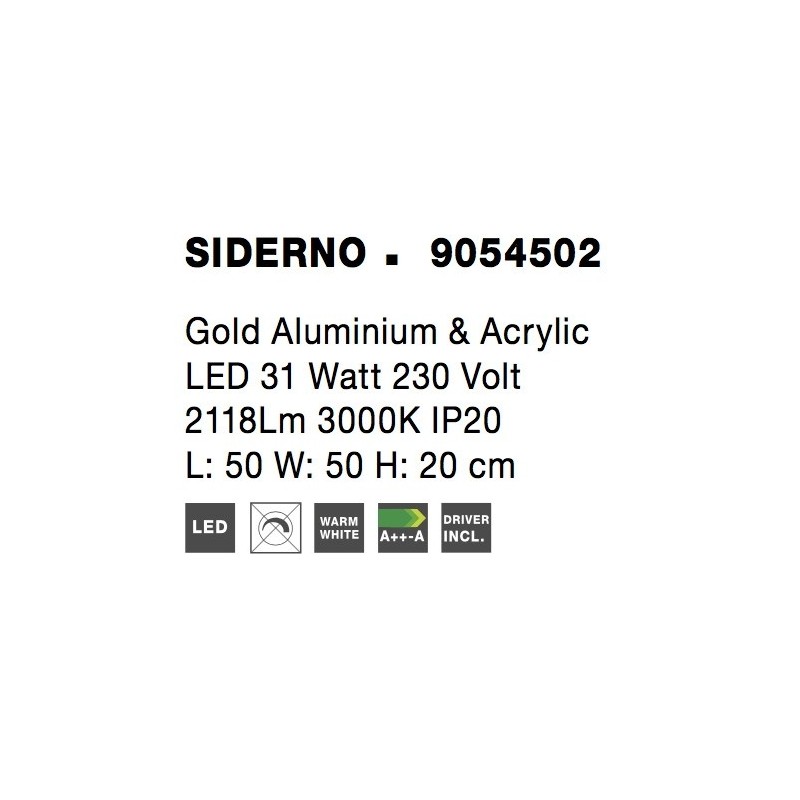 Gold Aluminium & Acrylic LED 31 Watt 230 Volt 2118Lm 3000K IP20 L: 50 W: 50 H: 20 cm