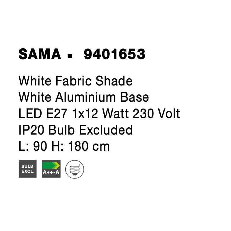 White Fabric Shade White Aluminium Base LED E27 1x12 Watt 230 Volt IP20 Bulb Excluded Cable Length: 180 cm L: 90 H: 180 cm