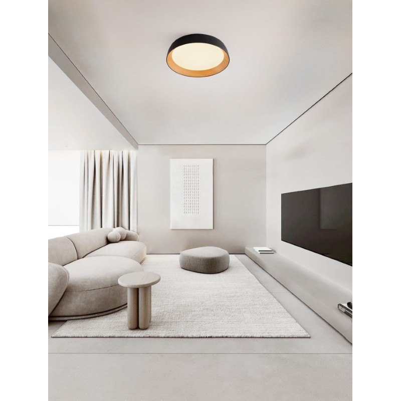 Triac Dimmable Sandy Black & Wood colour Aluminium, Metal & Acrylic LED 50Watt 220-240Volt 4201Lm 3000K IP20 D: 60 H: 12 cm