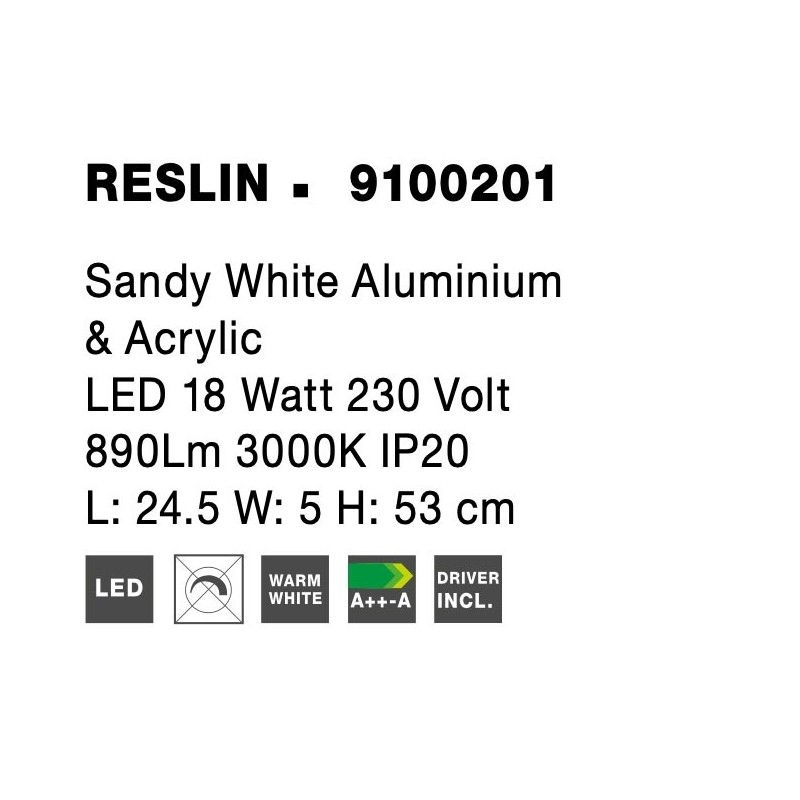 Sandy White Aluminium & Acrylic LED 20 Watt 230 Volt 890Lm 3000K IP20 L: 24.5 W: 5 H: 53 cm