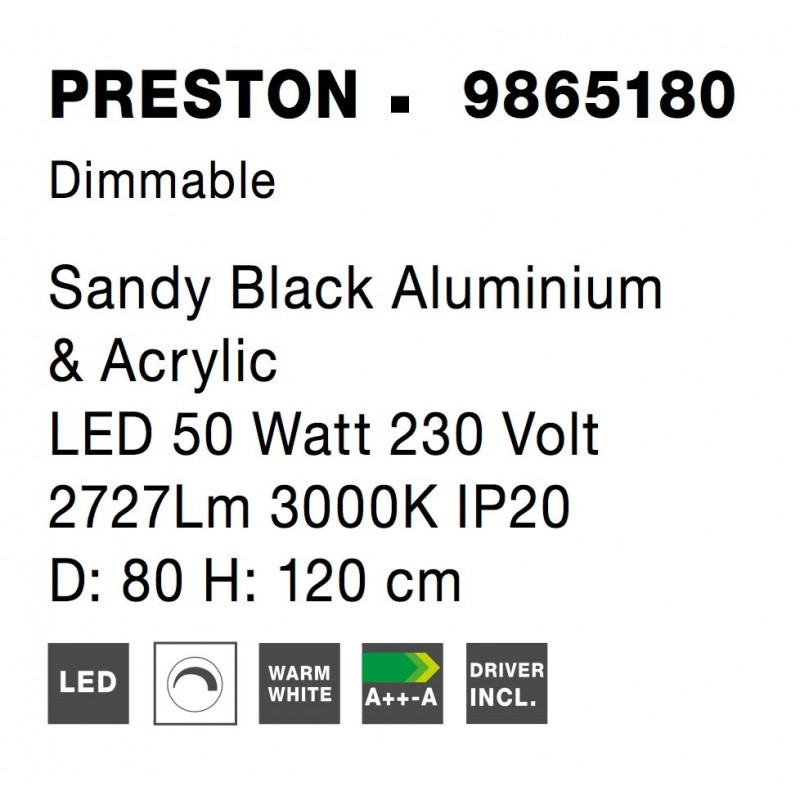 Traic DimmableSandy Black Aluminium & Acrylic LED 50 Watt 230 Volt 2727Lm 3000K IP20 D: 80 H: 120 cm Adjustable height
