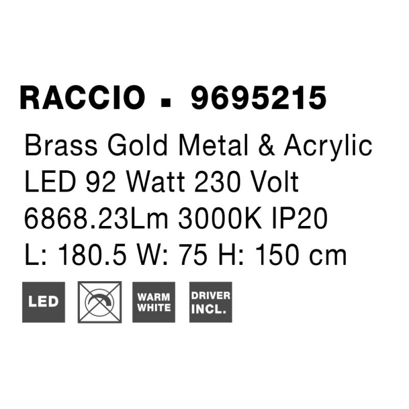 Triac Dimmable Brass Gold Metal & Acrylic LED 109 Watt 230 Volt 6868Lm 3000K IP20 Included Remote Control L: 180.5 W: 75 H: 200