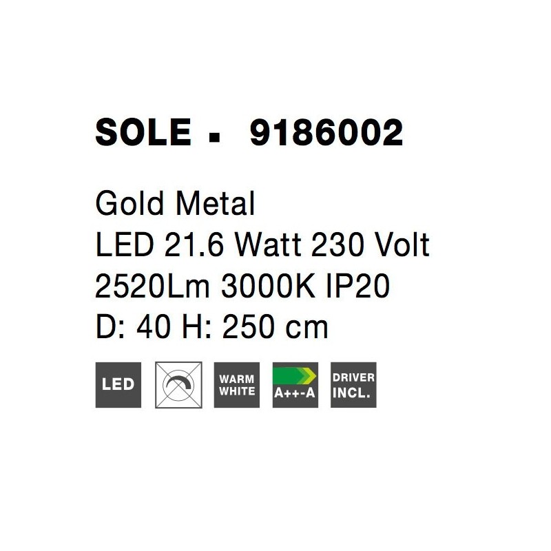 Gold Copper LED 21 Watt 230 Volt 2403Lm 3000K IP20 Led Chip: 60 Pcs D: 40 H: 250 cm Adjustable Height