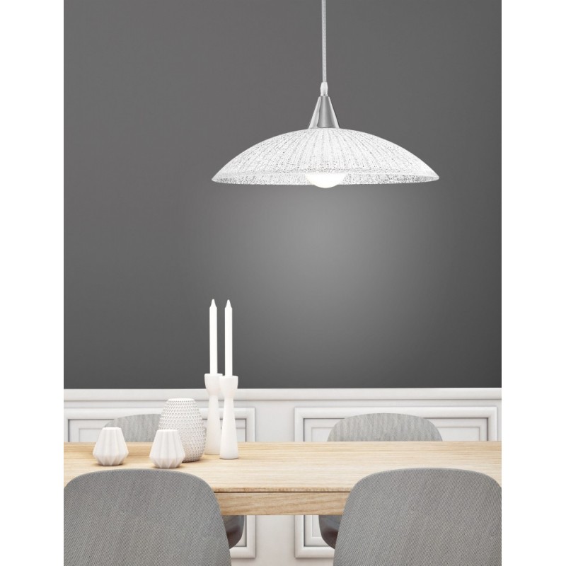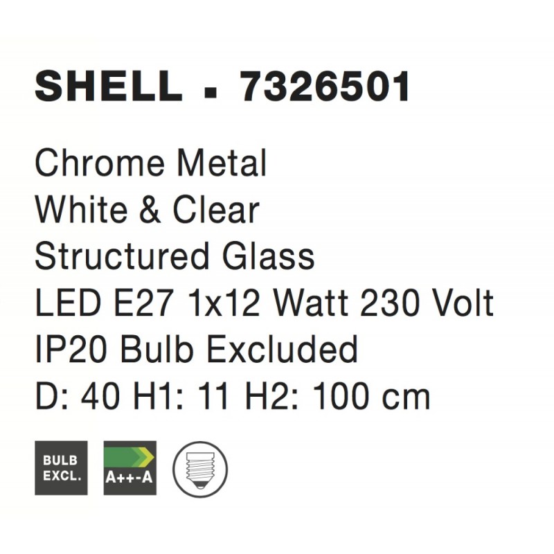 Chrome Metal White & Clear Structured Glass LED E27 1x12 Watt 230 Volt IP20 Bulb Excluded D: 40 H 1: 11 H 2: 100 cm