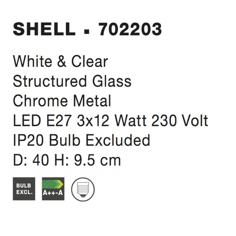 White & Clear Structured Glass Chrome Metal LED E27 3x12 Watt 230 Volt IP20 Bulb Excluded D: 40 H: 9.5 cm
