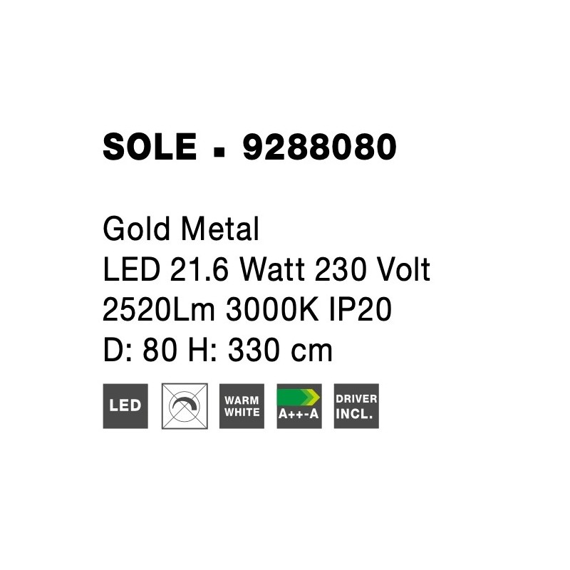 Gold Copper LED 22 Watt 230 Volt 2520Lm 3000K IP20 Led Chip: 60 Pcs D: 80 H: 330 cm Adjustable Height
