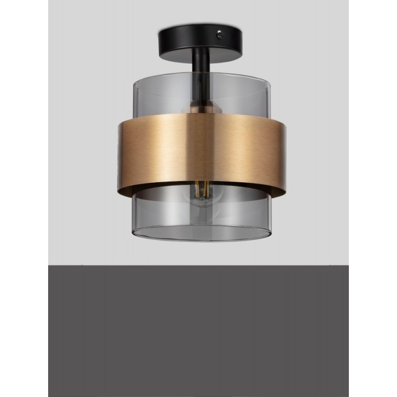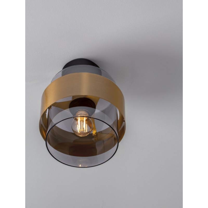 Smoky Glass Brass Gold Metal LED E27 1x12 Watt 230 Volt IP20 Bulb Excluded D: 18 H: 21.5 cm
