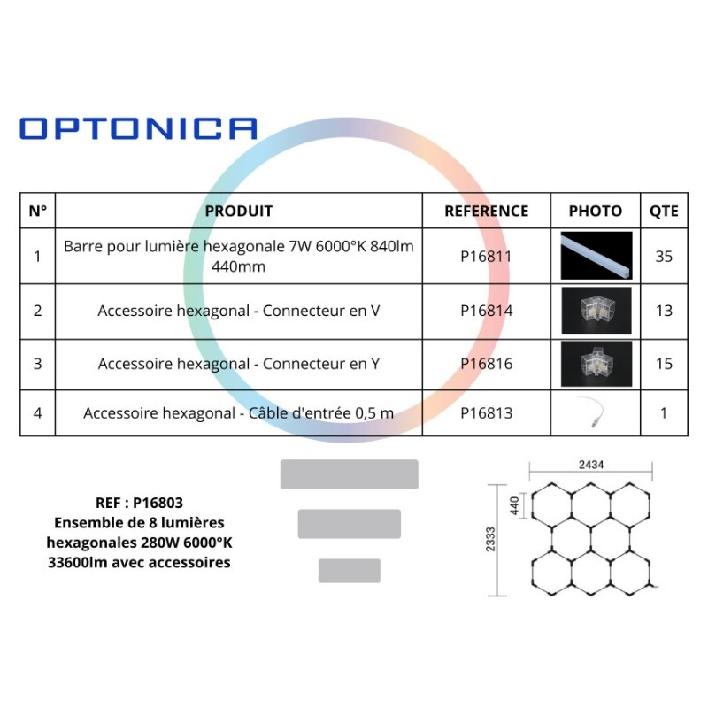 Ensemble de 8 lumières hexagonales 280W 6000°K 33600lm avec accessoires