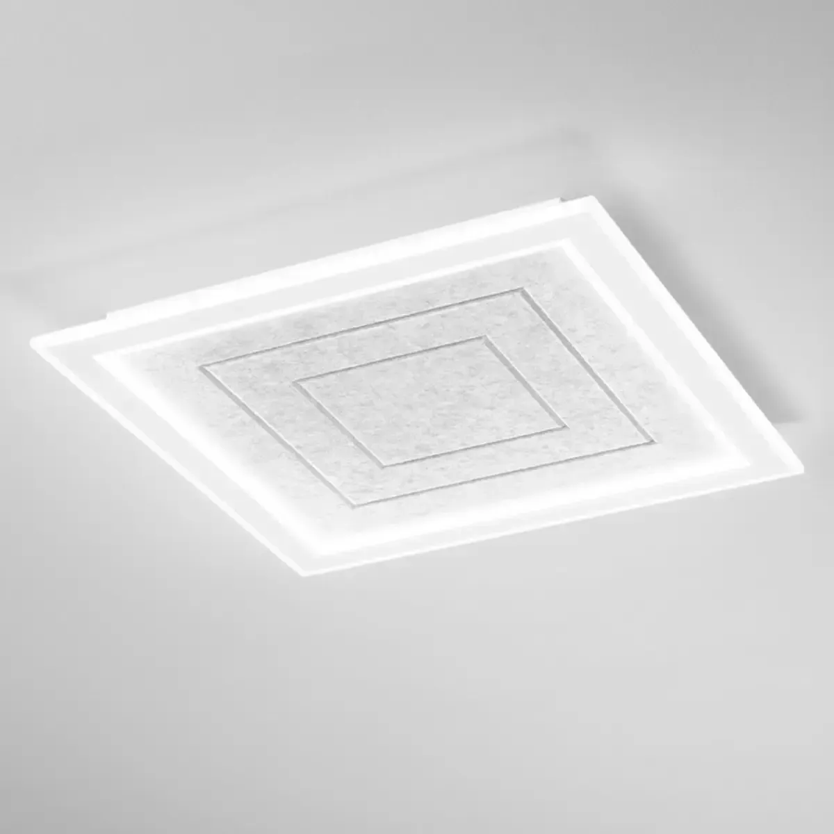 Avec sa forme carrée de 60 x 60 cm et son profil ultra-fin de 5,5 cm, ce plafonnier s'intègre avec élégance dans les architectures modernes (type loft, bureau ou salon contemporain). Le diffuseur en PMMA gris haute qualité assure une lumière douce, sans éblouissement et parfaitement répartie sur toute la surface.