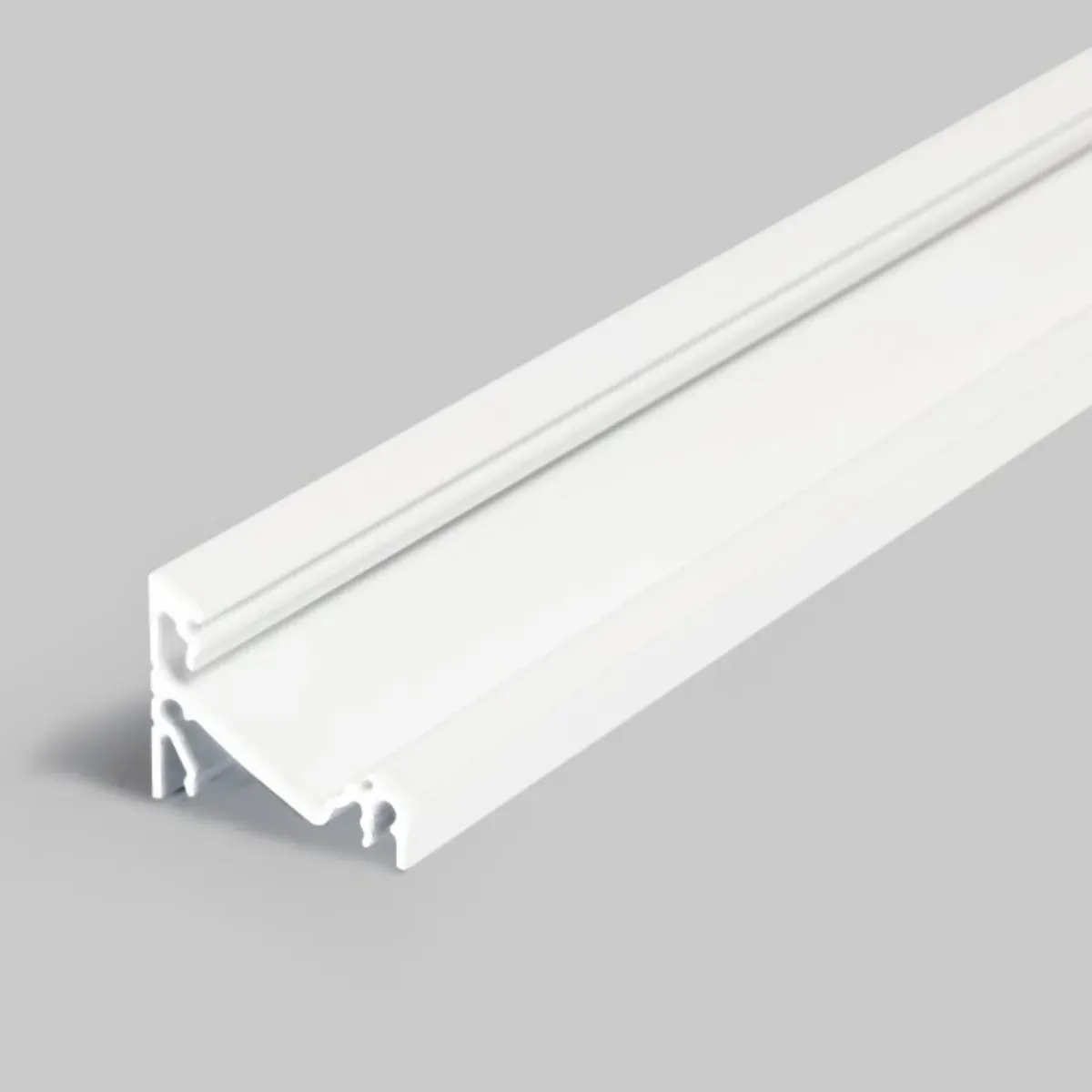 profilé angulaire. La conception de ce profilé permet d’obtenir un angle faisceau de 30° ou 60°, selon votre préférence. Parfait pour l’éclairage des vitrines, monté à plat ou dans les coins. Pour le profilé en aluminium, vous pouvez choisir l'un des 5 diffuseurs en polyester, polypropylène, polycarbonate et les bouchons en plastique ABS. La puissance dépend du type de sources lumineuses à LED utilisée. L'avantage est le grand angle de protection contre l'éblouissement.