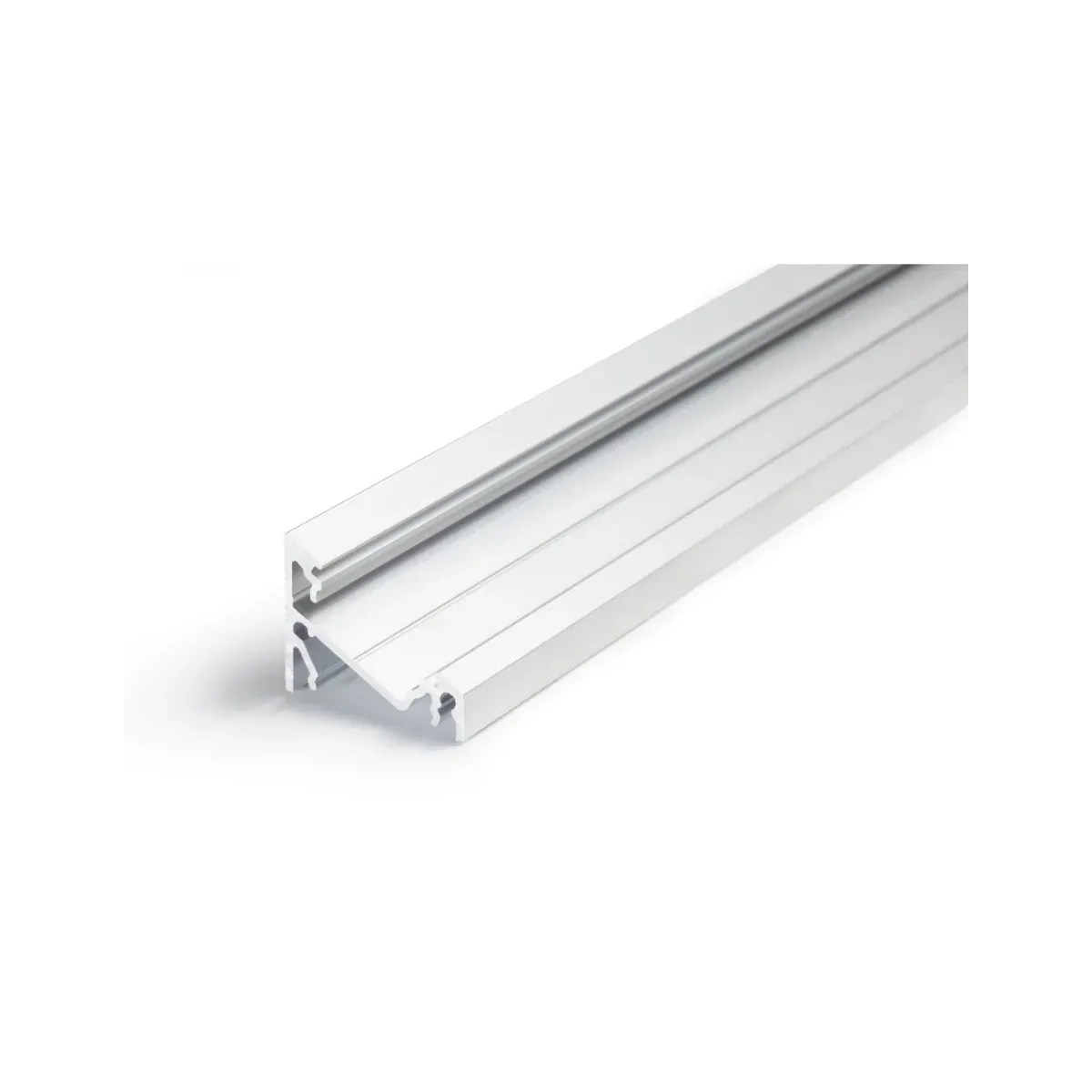 profilé angulaire. La conception de ce profilé permet d’obtenir un angle faisceau de 30° ou 60°, selon votre préférence. Parfait pour l’éclairage des vitrines, monté à plat ou dans les coins. Pour le profilé en aluminium, vous pouvez choisir l'un des 5 diffuseurs en polyester, polypropylène, polycarbonate et les bouchons en plastique ABS. La puissance dépend du type de sources lumineuses à LED utilisée. L'avantage est le grand angle de protection contre l'éblouissement.